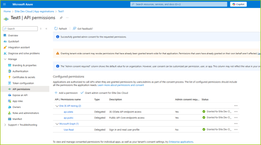 After adding the permissions, you’ll see a prompt indicating that admin consent is required.